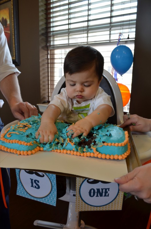 get to eat, throw, and play in as much frosting and cake as they would like! This past weekend was my nephew’s 1st birthday, and my sister did such a great job with his party (check out her blog for more details on the “Little Man” theme). My job was, of course, the Smash Cake and I wasn’t about to let anyone down. While talking about how I wanted make it, I learned from other mothers the “Do’s” and “Don’ts” of The Smash Cake!